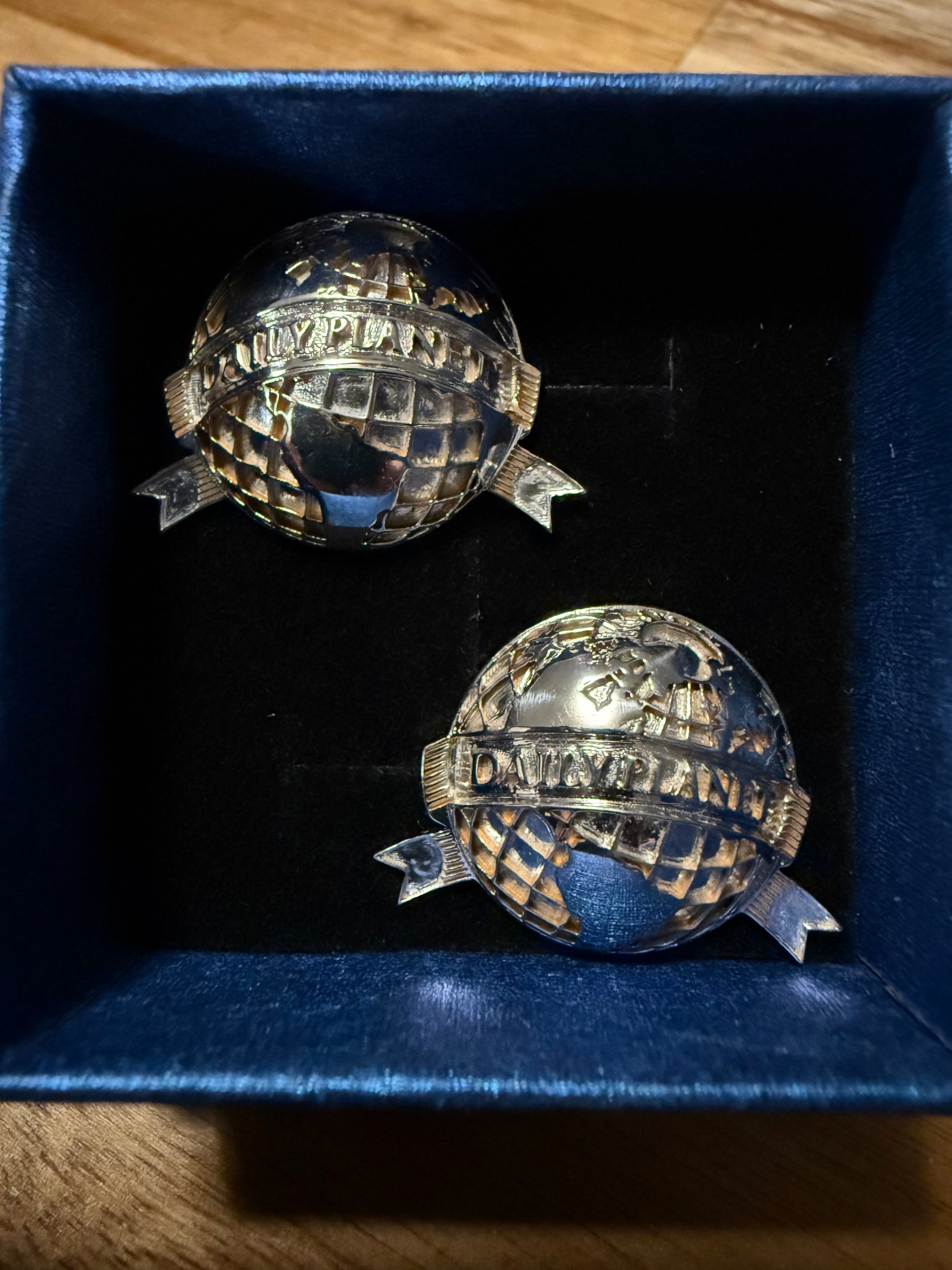 Jimmy Olson was really impressed when Perry White handed you these very unique Daily Planet cufflinks. Lois also has a set she uses as botton covers, since they are very versatile.